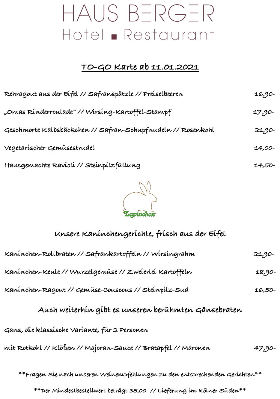 Berger Gastronomie GmbH Uferstraße 73 50996 Köln-Rodenkirchen Telefon: +49 221 3408882 info@haus-berger.koeln