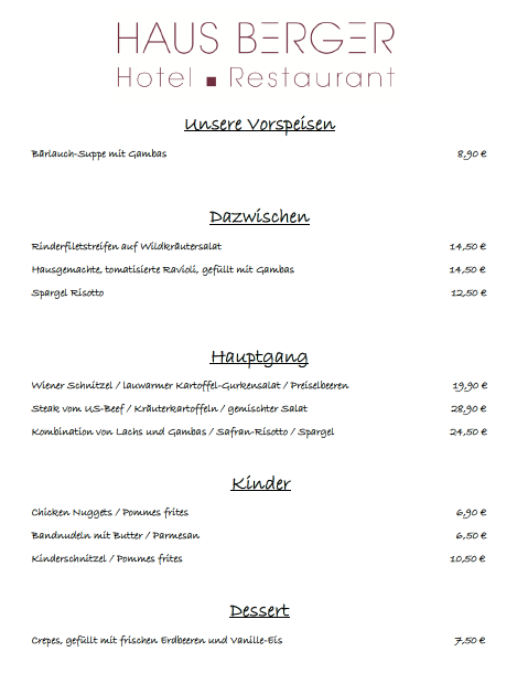 • Speisekarte ab 06.03